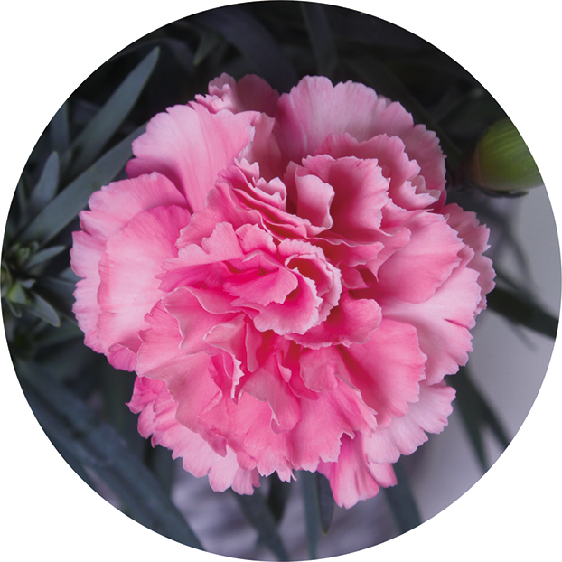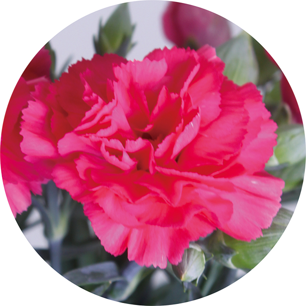 グラデーションが楽しめる 咲き始めの濃いピンクから淡いピンクへと移ろう愛らしいカーネーション。グラデーションがお楽しみいただけます。※カゴのデザインが変更になる場合がございます