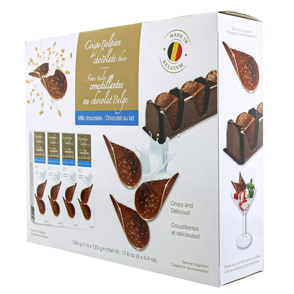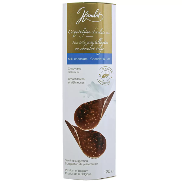ハムレット社は1956年に創設され、チョコレート、ビスケットを専門とし長年にわたり成長を続けています。チョコレートをチップス状に薄くのばして仕上げてあり、パリッとした軽い口当たりが特徴。まろやかな風味の本格的なベルギーチョコと、サクサクとした食感のクリスプが織りなす贅沢な味をお楽しみいただけます。小分けパックになっていて便利です。