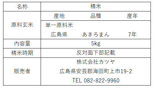 【200袋限定!!】新米広島県産あきろまん(5kg)【カツヤ】