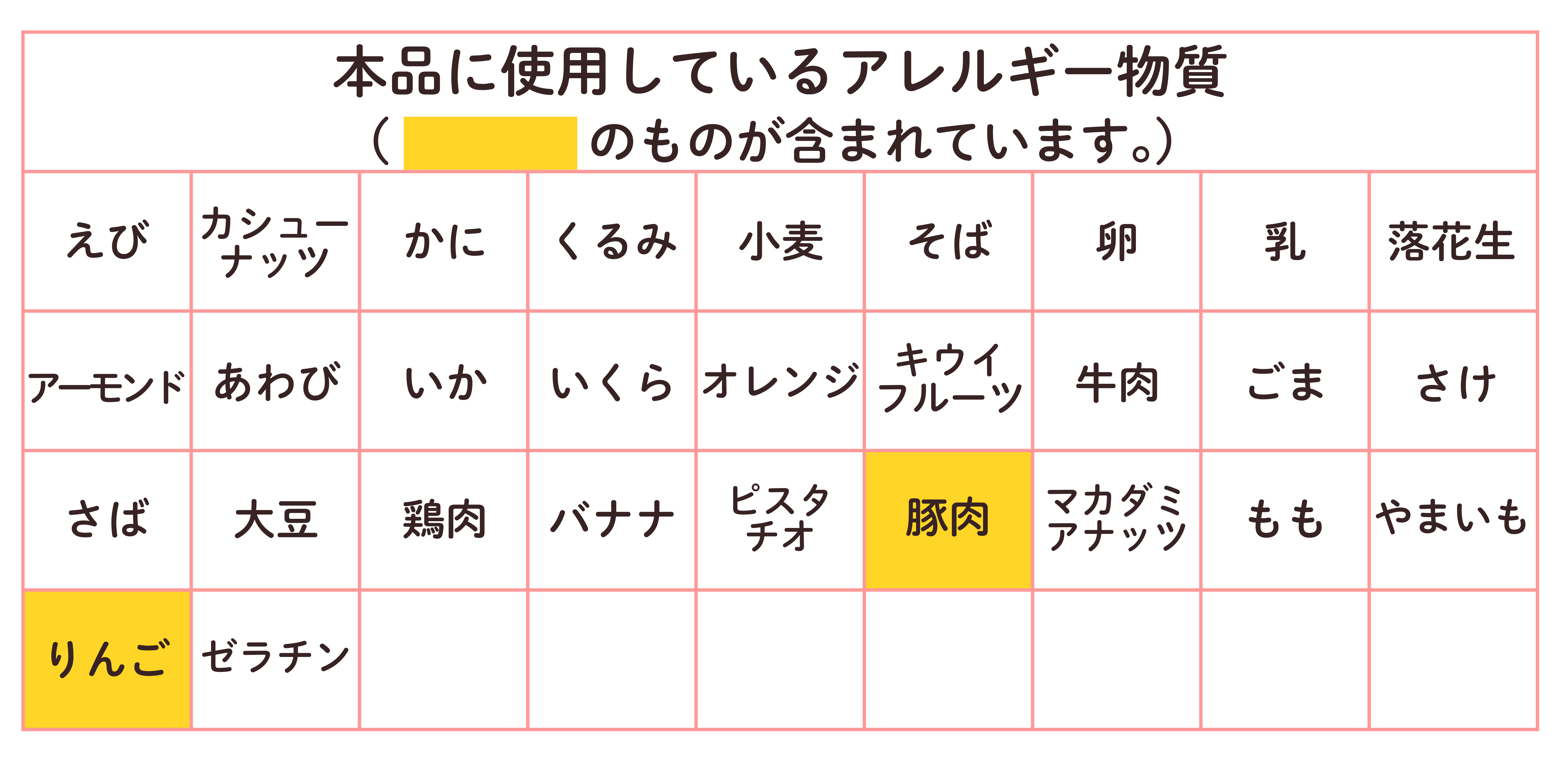 | アレルギー表示 | 豚肉、リンゴ |