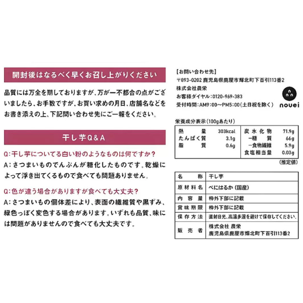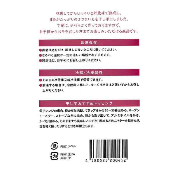 ・国産の熟成させたサツマイモを使用し甘くねっとり美味しく仕上げたスティック干し芋