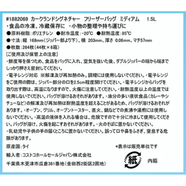 【新商品】【コストコ】フリーザーバッグ Mサイズ 264枚(カークランドシグネチャー )