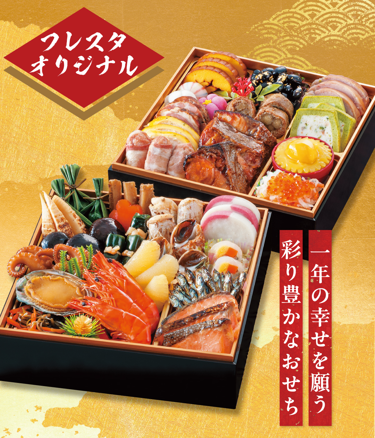 新年の華やぎを気軽に楽しむフレスタオリジナル二段重です。