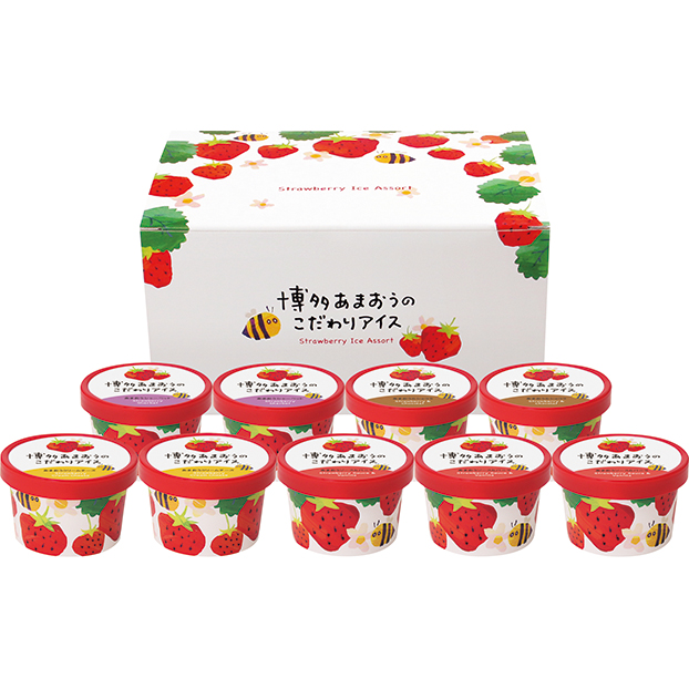 商品規格:あまおうソース&バニラ58ml×3、あまおう&ショコラ76ml×2、あまおうクリームチーズ・あまおうシャーベット各78ml×各2