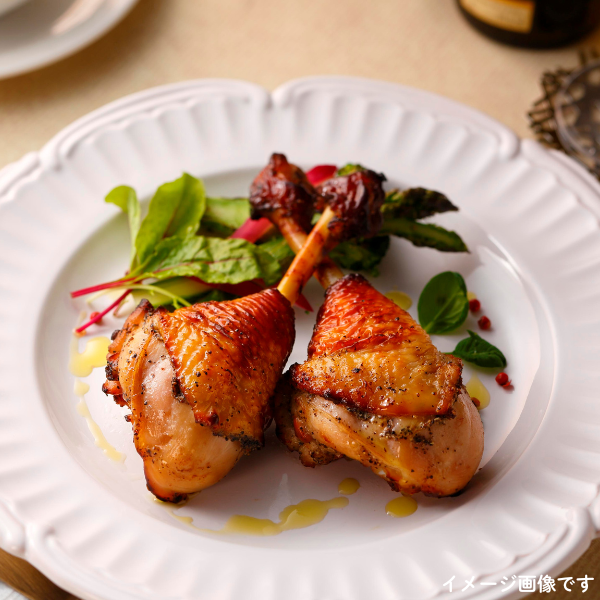 もも肉の力強い旨味を感じられるよう、塩味、ガーリックをきかせたしっかりとした味付けにいたしました。