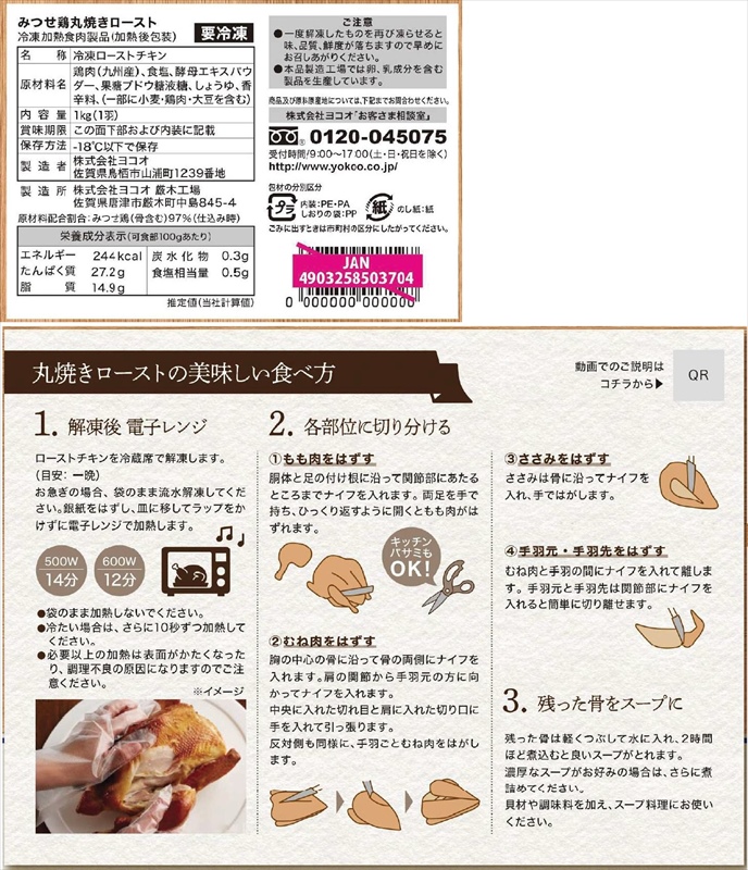 (冷凍)みつせ鶏丸焼きロースト(箱入り)(1kg)【ヨコオフーズ】