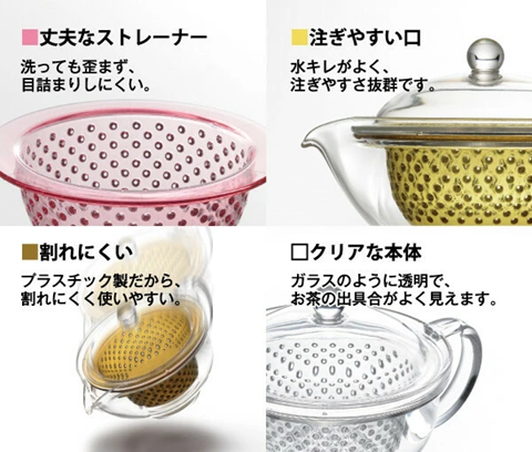 1人分に最適な、かわいい飲みきりサイズ。透明だからお茶の出具合がよく見える。