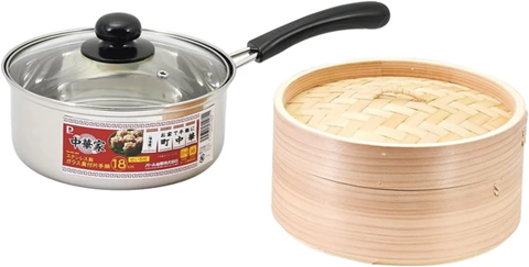 ■せいろ付 片手鍋 18cm セット IH対応 ガラス蓋付 ステンレス製 中華家 HC-281 パール金属