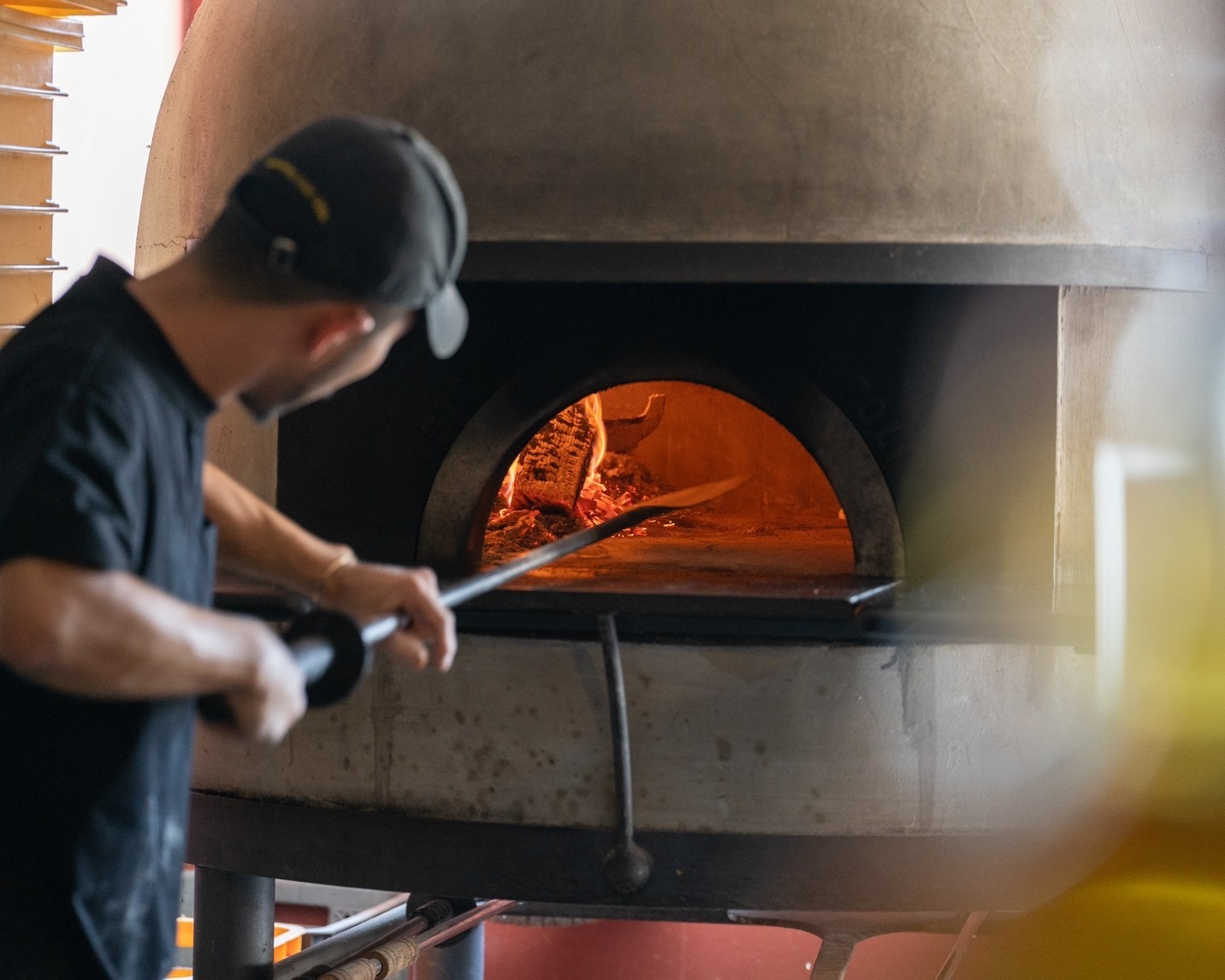 ・ナポリ製の薪窯の温度は500℃まで上がり、長時間蓄熱することができるのが特徴