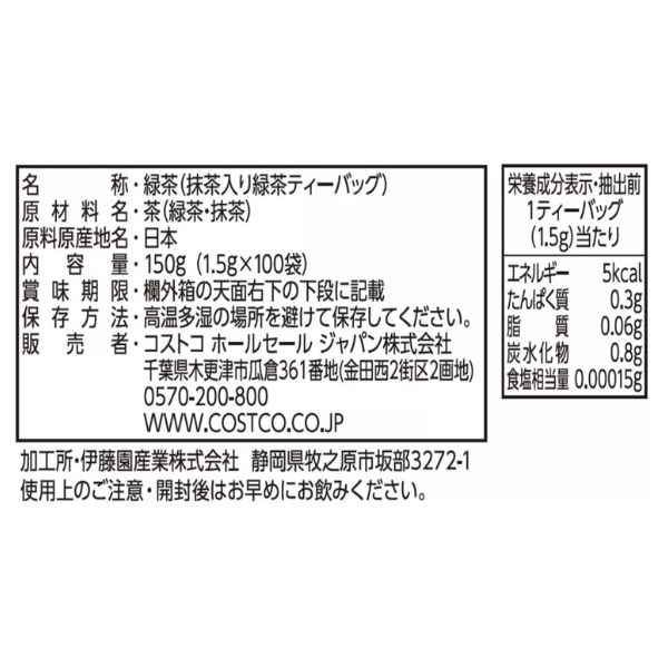 【新商品】【コストコ】緑茶ティーバッグ 100袋 カークランドシグネチャー