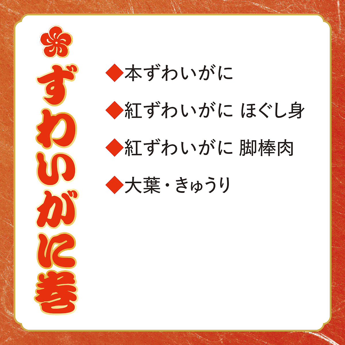 本ずわいがにと紅ずわいがにがたっぷり入った蟹三昧の巻寿司です。