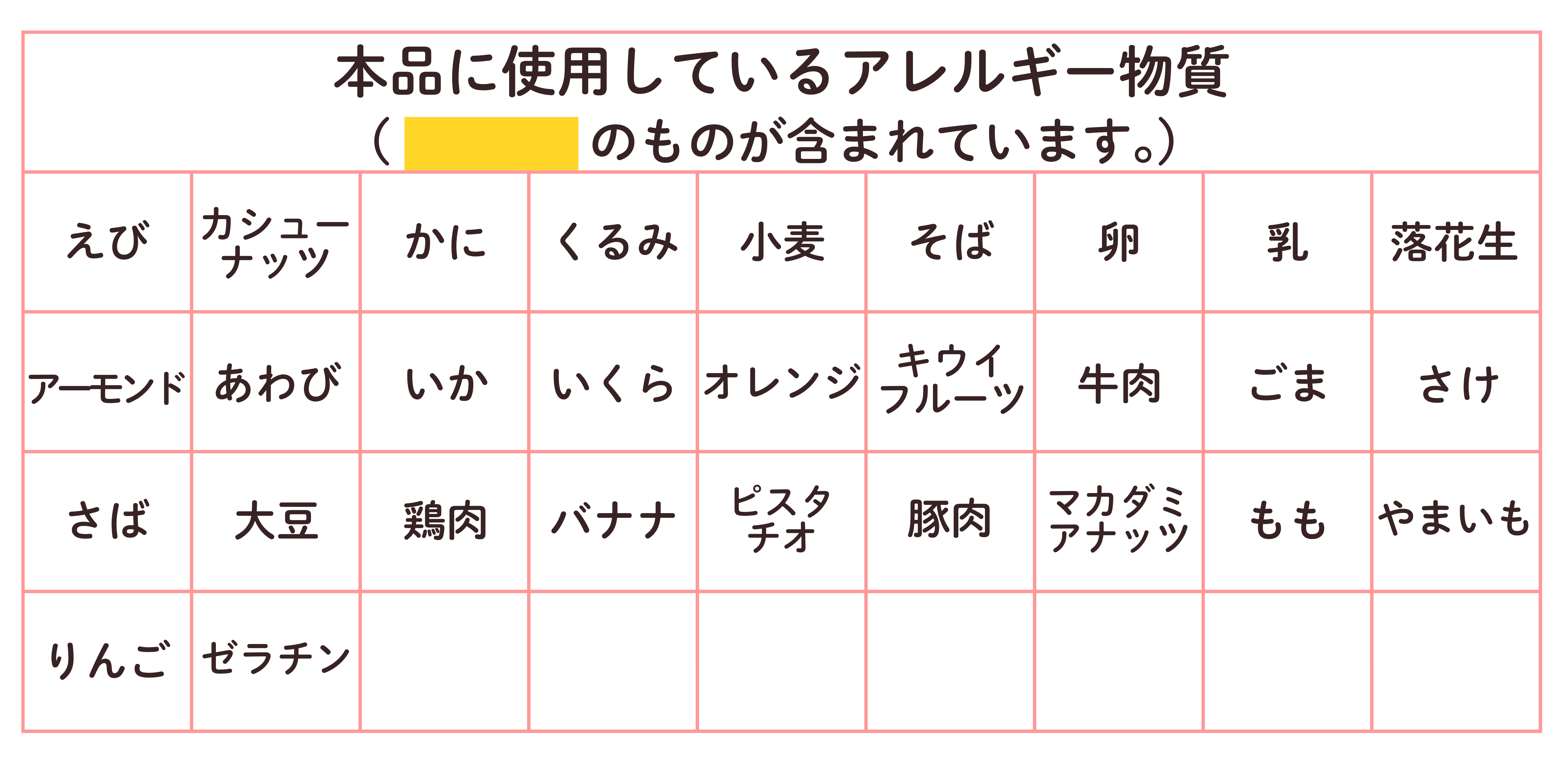 | 原材料名 | 黄えんどう豆粉(アメリカ製造、国内製造) |