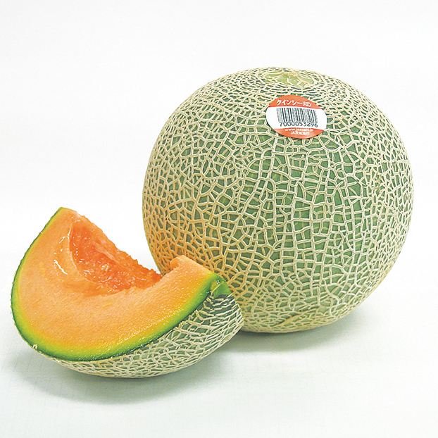 クインシーメロンの名前の由来は、女王を表すクイーンと健康を表すヘルシーとの組み合わせ。赤肉で糖度が高く、ジューシーで濃厚な甘みを堪能できます。