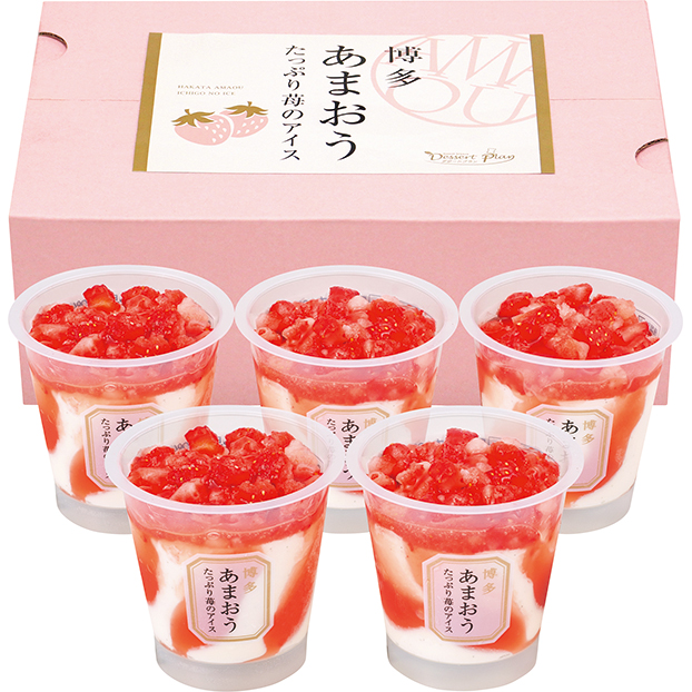 「博多あまおう」のソースが入ったアイスの上に、ごろっと果肉をのせた苺づくしのアイスです。