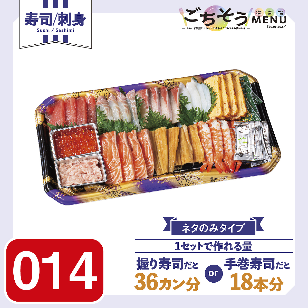 ●まぐろ ●本鯛 ●ぶり ●いか ●玉子 ●いくら●ねぎとろ ●サーモン ●穴子 ●えび