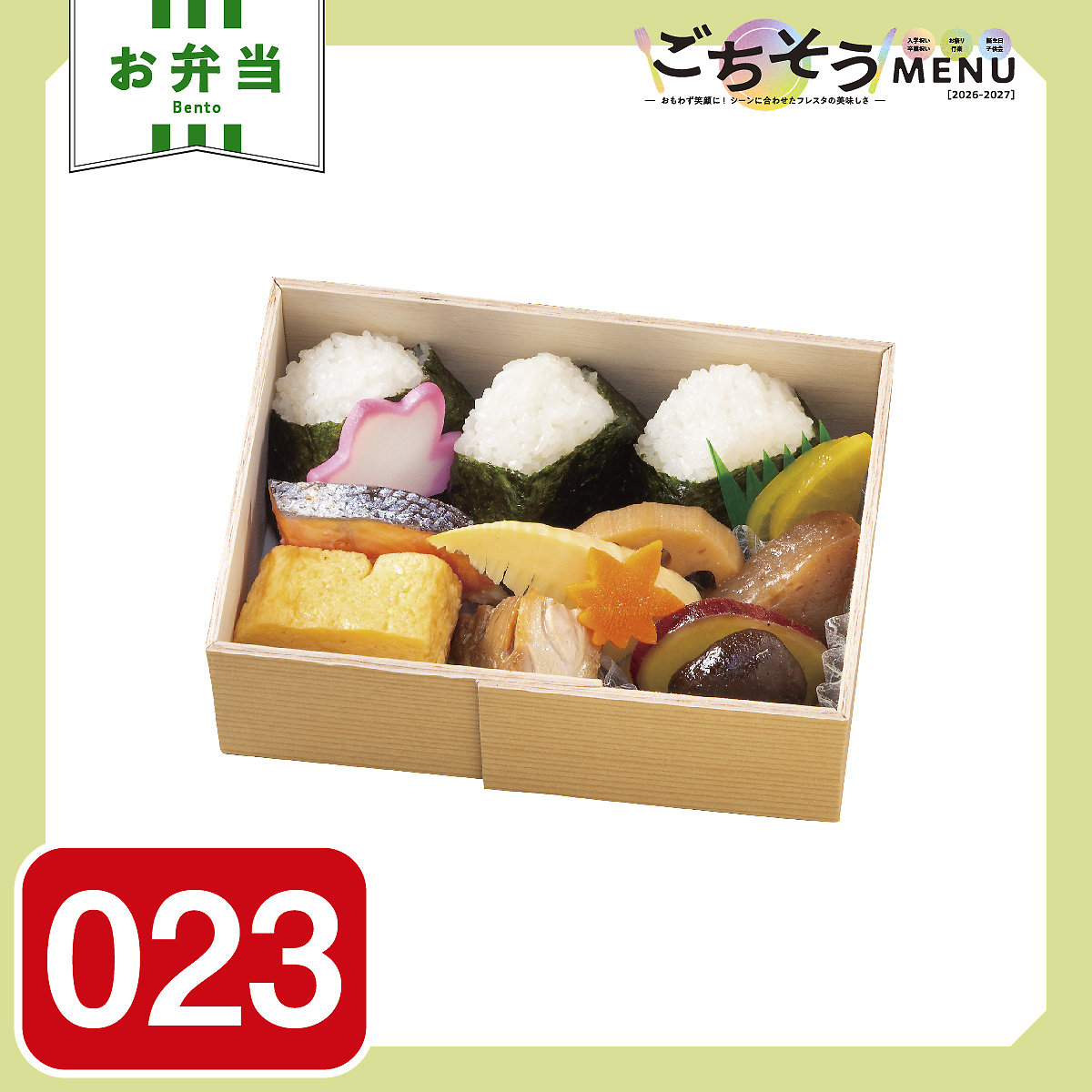 広島駅弁当と広島県山岳連盟との共同開発商品。具入りむすびと、焼鮭や煮物を盛り込んだ人気のむすび弁当です。