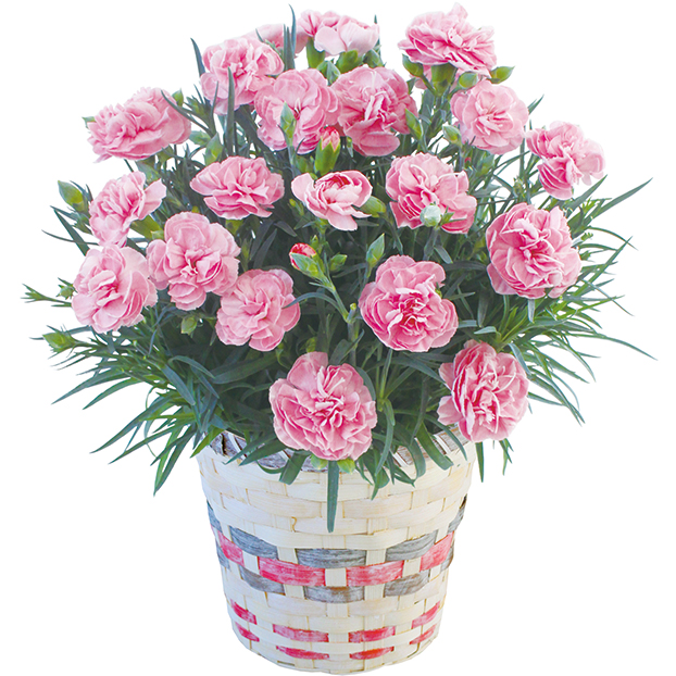 ソフトピンクの彩りで、大切な方への贈りものにふさわしいお花です。※カゴのデザインが変更になる場合がございます