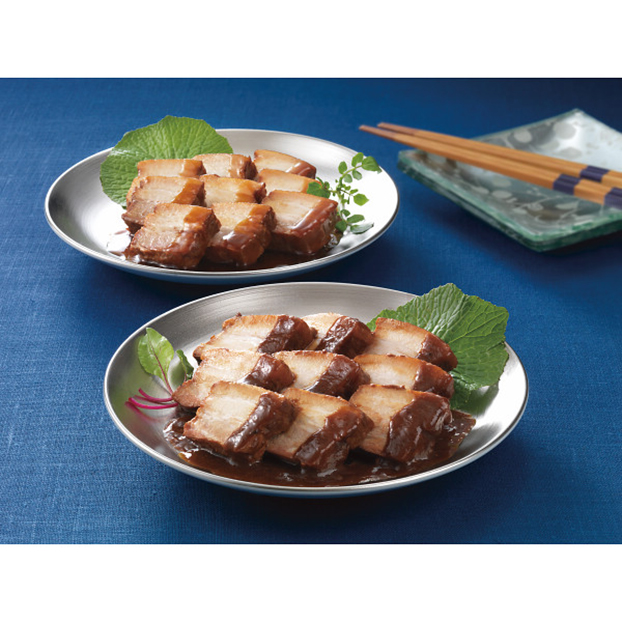 豚ばら肉のかたまりをじっくり煮込んで仕上げました。味噌・醤油の2種類の味をお楽しみください。●豚肉の味噌煮込み:豚ばら肉を赤だし味噌仕立てのたれで煮込んだ、ごはんやお酒のすすむ一品です。 ●豚肉の和醤煮込み:豚ばら肉をすっきりとした味わいのしょう油たれでやわらかく仕込み、ひと味違った煮豚に仕上げました。
