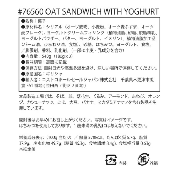 【コストコ】Violanta オーツ ビスケット サンドイッチ 540g