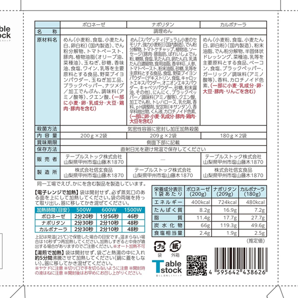 【新商品】【コストコ】Tablestock レンジでチンする本格パスタ 3種x2食