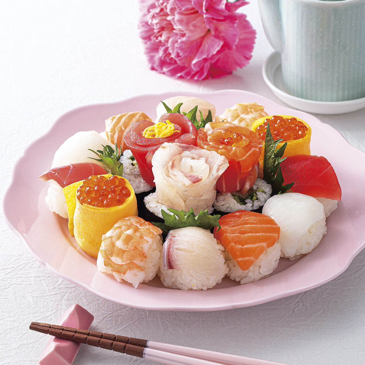 お寿司の中に花畑が!?可愛くて、食べても美味しい母の日にぴったりのお寿司です。