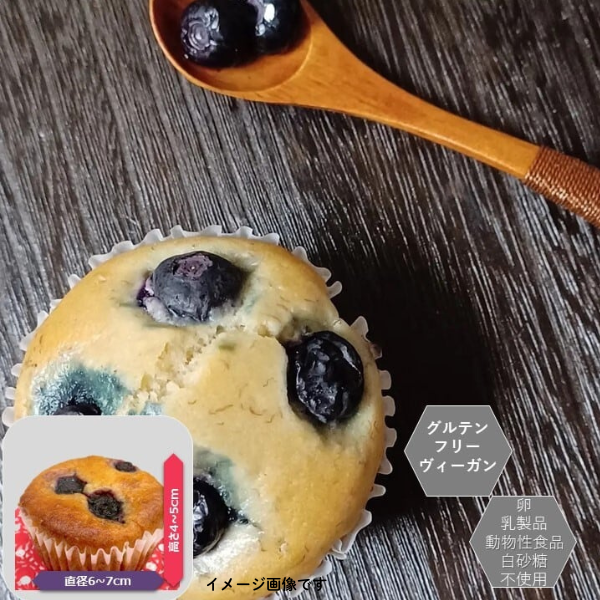 グルテンフリー&ヴィーガン、健康志向の方にぴったりの米粉マフィン、ブルーベリーフレーバーです。小麦粉や卵などのアレルギーが気になる方でも安心して食べることができます。