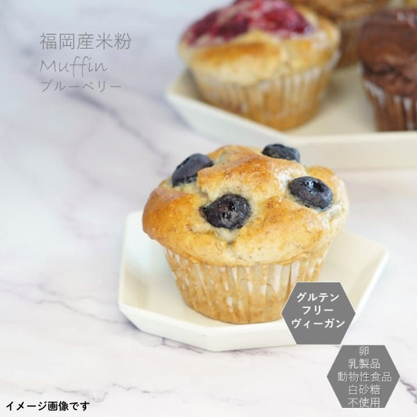 グルテンフリー&ヴィーガン、健康志向の方にぴったりの米粉マフィン、ブルーベリーフレーバーです。