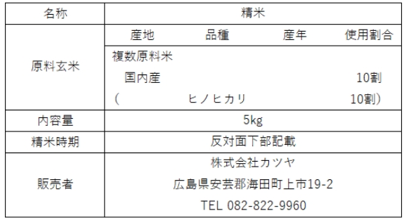 【50袋限定!!】国内産厳選ヒノヒカリ(5kg)【カツヤ】