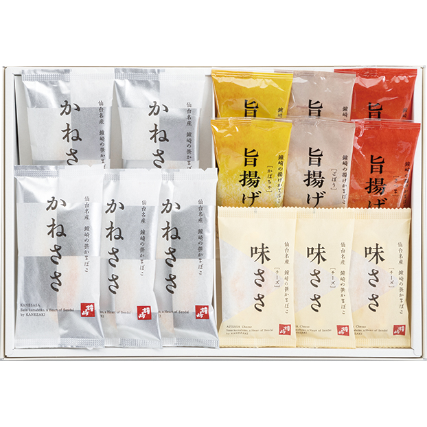 商品規格:かねささ×5、味ささ(チーズ)×3、旨揚げ(さつま・ごぼう・かぼちゃ)×各2