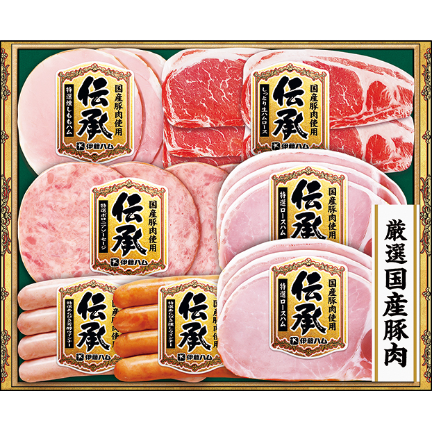 商品規格:特選ボロニアソーセージ51g、しっとり生ハムロース34g、特選燻しももハム48g、特選あらびき芳醇ウインナー85g、特選あらびき燻しウインナー85g、特選ロースハム45g×2
