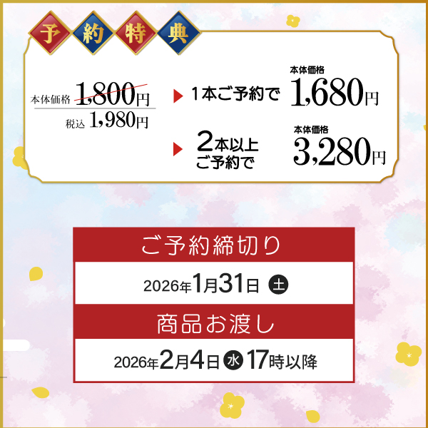 ※2本ご予約で3280円(2本以上ご予約で適用されます)